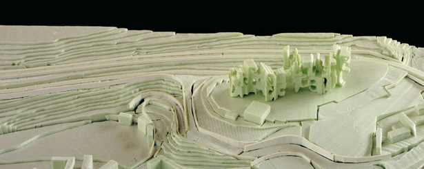 I've blogged about this kind of problematic inspirations before. But at least in that case there were some sort of transformations going on and it was not that literal. You can borrow things, be inspired by them. But a stack of letters? How can you even draw a section and study the structure and think that makes sense? "Well... at least it's unique and special..." Oh sorry, you are actually not that original at all. It's been done before. Back in 2003 when BIG and JDS were still PLOT, they did a project in Vejle where they literally made the name of the city into five small towers. (Btw, that looks horrible too.)