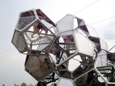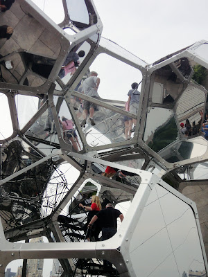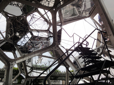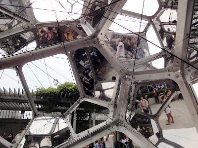 After several visits, I decided that this pavilion is one of the most difficult-to-photograph buildings I’ve seen in recent years. In the camera viewfinder, you see lines flying around in different angles. You can’t judge what’s perpendicular and what’s vertical any more. The strange form is completely anti-compositional. It’s not meant to create beautiful pictures. But all the funny angles work together magically and make the space very interesting.