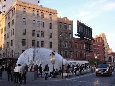 Maybe it's my obsession with the 60s, I found the Spacebuster truly intriguing. This mobile inflatable structure is a blown-up version of Archigram's Cushicle, or Suitaloon. But instead of being private/intimate, this big bubble designed by Raumlabor is public. Organized by Storefront for Art and Architecture, the Spacebuster will travel around New York City for 10 consecutive evenings for various events, such as lecture, screening, community workshop, and parties.