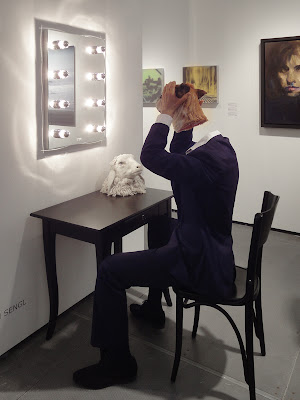 Compared to Art Basel, I felt I saw more fresh ideas and new media here in Scope. MARCK’s video installations synthesized film and physical objects into a new art form. Anna Tas used lenticular printing techniques to create a cute 3D version of Magritte. Alessandro Brighetti demonstrated electromagnetic manipulation of oil-based ferrofluids on a dark skull. Kenji Sugiyama created fascinating mini universes within pasta boxes. This series of dioramas explored the notions of consumerism and voyeurism.
